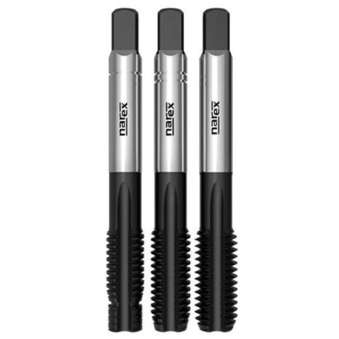 NAREX-ZD Kézi menetfúró METRIKUS, NORMÁL menet HSS-E DIN352 NAREX-ZD Kézi menetfúró készlet, 3 részes DIN352 HSS-E Az elővágó fokozat vezető csappal rendelkezik. Kézi menetfúráshoz, zsák és átmenő furatokhoz. Ajánlott: acél < 850 N/mm2-ig; acél < 1000