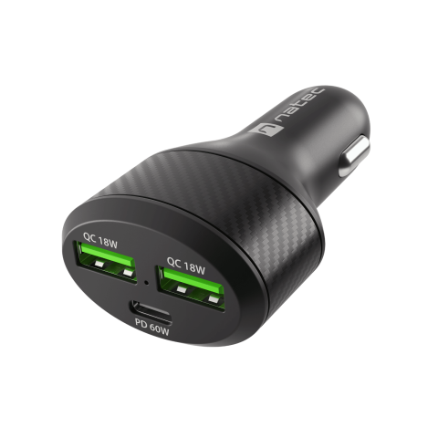 Natec Coney 2x USB-A/USB-C Autós töltő - Fekete (60W) (NUC-1981)