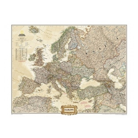 1 kép NATIONAL GEOGRAPHIC Európa falitérkép keretezett National Geographic antik színű 117x92