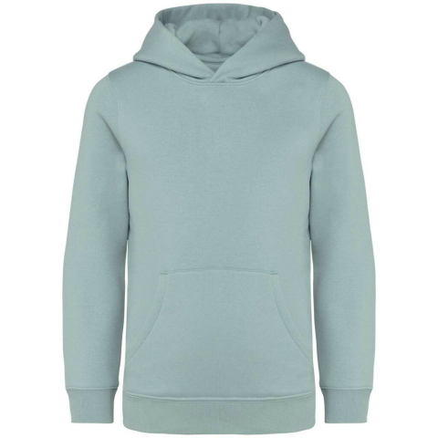 KIDS’ HOODED SWEATSHIRT 85% organikus pamut / 15% használat utáni újrahasznosított poliészter Gyűrűs fonású fésült pamut Egyenes szabás Szálcsiszolt 3 rétegű polár, LSF (alacsony zsugorodású anyag) Enzimmosott Félkör a hátán 1 x 1 bordás alsó s