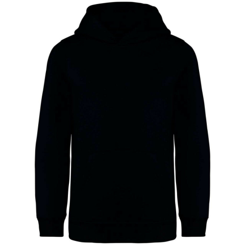 KIDS’ HOODED SWEATSHIRT 85% organikus pamut / 15% használat utáni újrahasznosított poliészter Gyűrűs fonású fésült pamut Egyenes szabás Szálcsiszolt 3 rétegű polár, LSF (alacsony zsugorodású anyag) Enzimmosott Félkör a hátán 1 x 1 bordás alsó s