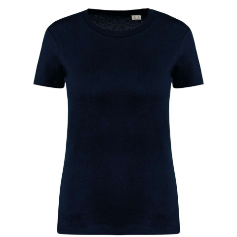 LADIES' T-SHIRT 100% organikus pamut Gyűrűs fonású fésült pamut Egyenes szabás Oldalvarrott Enzimmosott 1 x 1 bordázott nyakkivágás Pántos nyak a főanyagból készült belső pánttal Dupla tűzésű kivitel a mandzsettákon és a szegélyen XSSMLXL2XLT