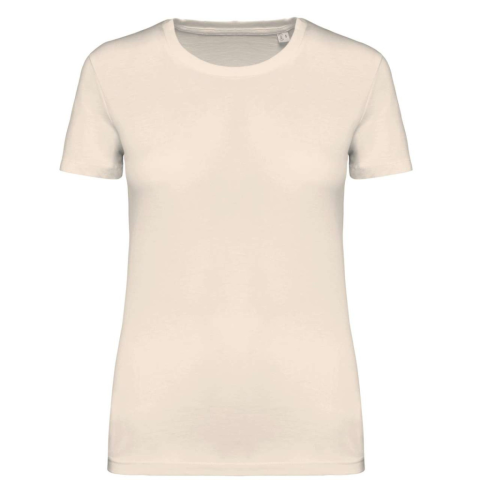 LADIES' T-SHIRT 100% organikus pamut Gyűrűs fonású fésült pamut Egyenes szabás Oldalvarrott Enzimmosott 1 x 1 bordázott nyakkivágás Pántos nyak a főanyagból készült belső pánttal Dupla tűzésű kivitel a mandzsettákon és a szegélyen XSSMLXL2XLT