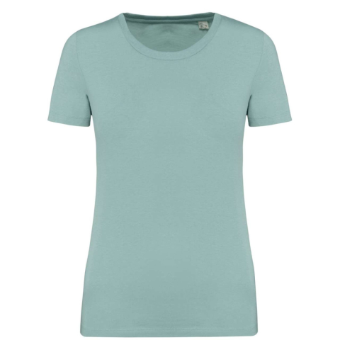 LADIES' T-SHIRT 100% organikus pamut Gyűrűs fonású fésült pamut Egyenes szabás Oldalvarrott Enzimmosott 1 x 1 bordázott nyakkivágás Pántos nyak a főanyagból készült belső pánttal Dupla tűzésű kivitel a mandzsettákon és a szegélyen XSSMLXL2XLT