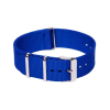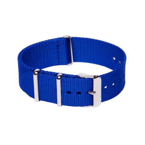 NATO óraszíj Ajánlott búvár (diver), katonai (military) és sportos stílusú karórához. Klasszikus viselet! Szín: kék Anyaga: nylon textil, fényes acél csat Szélessége: 22 mm Hossz: 270 mm Vastagság: 1 mm Használja letölthető méretezési segédletünket!