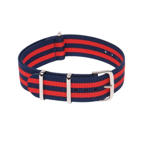 NATO óraszíj Ajánlott búvár (diver), katonai (military) és sportos stílusú karórához. Klasszikus viselet! Szín: sötétkék/piros Anyaga: nylon textil, fényes acél csatt Szélessége: 20 mm Hossz: 270 mm Vastagság: 1 mm Használja letölthető méretezési segédl