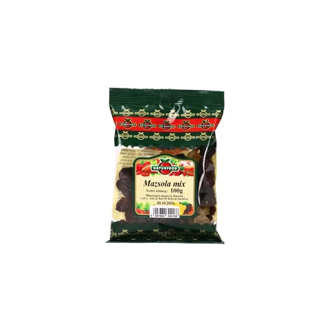 Háromféle mazsola (Thompson mazsola, fekete csemegemazsola és aranymazsola) ízletes keveréke. A terméket magában fogyasztva vagy müzlik, sütemények készítéséhez ajánljuk.