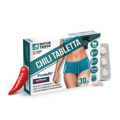 A Natur Tanya® CHILI TABLETTA védjegyzett, mikrokapszulázott chili paprika kivonat a testsúlycsökkentés támogatásához!1 A standardizált kapszaicinen kívül, dihidrokapszaicint és nordihidrokapszaicint is tartalmaz aktív hatóanyagként, melyek a testtömeg-ko