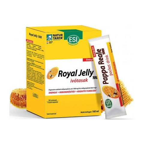 Natur Tanya® ESI® Royal Jelly - 1000 mg friss MÉHPEMPŐ folyékony ivótasakban + gesztenye méz, fekete áfonyabogyó, virágpor, acerola 1000MG FRISS MÉHPEMPŐ A NAPI ADAGBANFagyasztva szárított méhpempőt tartalmaz, ami 1000 mg friss méhpempőnek felel meg ta