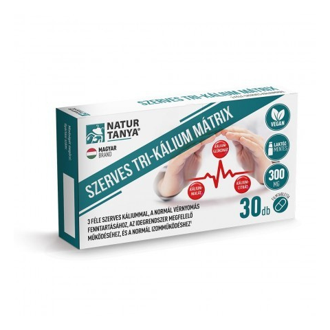 Szerves TRI-KÁLIUM MÁTRIX. 3 féle szerves káliummal a normál vérnyomás és izomműködés fenntartásához, az idegrendszer megfelelő működéséhez SZERVES TRI-KÁLIUM MÁTIX 3-féle, jól hasznosuló szerves káliumot tartalmazó filmtabletta, törőnyomattal a könnye