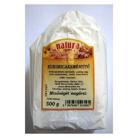 - Natura Kukoricakeményítő 500g Natura Kukoricakeményítő 500g A termékekből nem tudjuk biztosítani a kért mennyiséget, vagy nincsenek készleten, vagy nem listáztuk még be a webáruházba! A termék rendelhető az információk figyelembevételével! A fenti termék előrendelhető natur bio webáruházunkban boltunkban. A terméket ha többször megrendelik belistázzuk, az előrendelés leadásával, jelzi felénk vásárlási szándékát.Az előrendelés nem jelent vásárlást, mindössze érdeklődést, mi felvesszük Önnel a kapcsolatot, és megbeszéljük a részleteket. Az előrendelhető termékek nagy többségét, ugyanannyi idő alatt, és ugyanolyan formában tudjuk kiszállítani, mint a belistázott termékeket. Ha több megrendelés érkezik adott termékre, 'elérhető' állapotba rakjuk. Így a kedves vásárló, és átvitt értelemben a piac maga dönti el, hogy milyen termékeket forgalmazzunk. A lehetőséget arra, hogy keresett termékét elérje szeretnénk, és megpróbáljuk biztosítani, akár egyedi, kisebb számú érdeklődés, akár tömeges igény van az adott termékre.