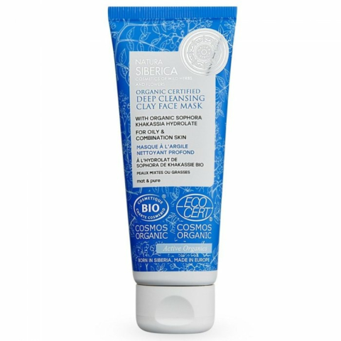 Natura Siberica virágvíz alapú mélytisztító agyagos bio arcmaszk zsíros és vegyes bőrre, 75 ml