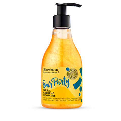 Natura Siberica Skin Evolution frissítő tusfürdő gél Bear Party, 260 ml- A vad szibériai medveszőlő-kivonat segít enyhíteni a pigmentációt és rugalmasságot ad- A bio mézkivonat megszünteti a szárazságot és értékes vitaminokkal tölti fel bőrét- Bio mentakivonat hatékonyan tonizál és frissít- A- és B5-vitamin tartalma nagymértékben hidratál és véd a környezeti hatásoktól- Az összetevők 95%-a természetes eredetű- Vegán