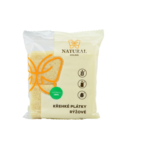 Natural extrudált rizs szeletek 75 g Közvetlen fogyasztásra alkalmas gluténmentes rizsszeletek. Összetevők: rizsliszt 95%, kukoricadara, só. Allergének: nincs.