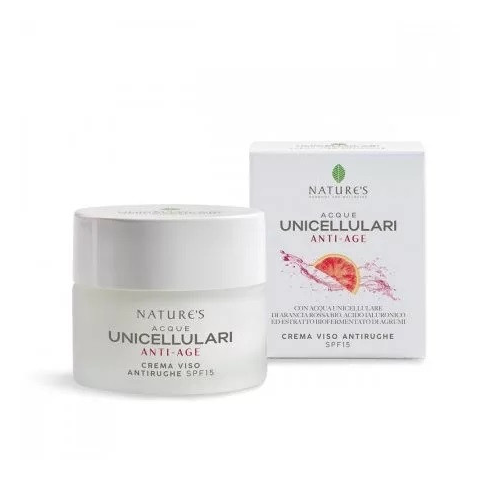Nature's Anti-aging arckrém SPF15, 50 ml - Bio unicelluláris narancsvízzel - Feszesíti az arcbőrt és harcol az öregedés jelei ellen - Formulája magas koncentrációjú hialuronsavat használ a ráncok kisimítására és a bőr hidratálására - Citrus gyümölcsök b