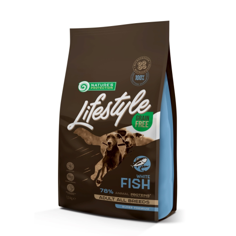 Natures Protection Lifestyle Dog Adult Grain Free White fish 1,5kg kutyaeledel termékleírás