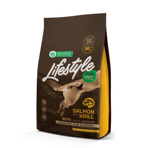 Natures Protection Lifestyle Dog Starter Grain Free Salmon with krill 1,5kg kutyaeledel termékleírás