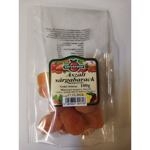 Naturfood aszalt sárgabarack 100 g Összetevők: Aszalt sárgabarack, antioxidáns (kén-dioxid)