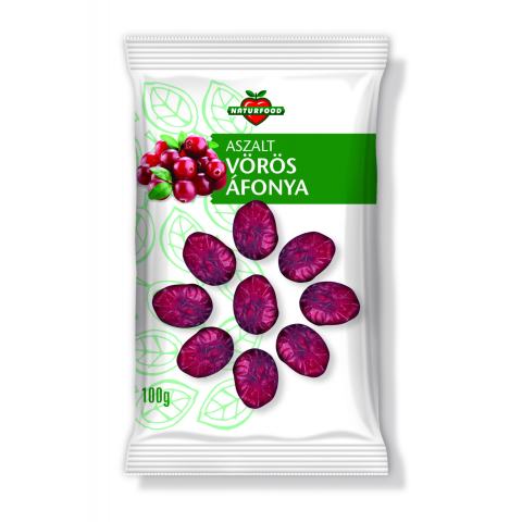 Naturfood aszalt vörösáfonya 100 g Fogyasztható közvetlenül csemegeként, felhasználható müzlik, joghurtok ízesítésére, sütemények készítéséhez. Összetevők: Aszalt vörös áfonya, cukor, napraforgó olaj