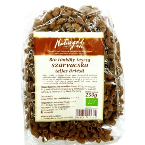 Bio tönköly szarvacska tészta teljes őrlésű Bio tönköly szarvacska tészta teljes őrlésű 250g Tradícionális, kedvelt tésztaféle, teljes kiőrlésű, frissen őrölt lisztből. Gyorsan elkészül, nem fő szét, nem ragad össze. Minőségének garanciája a hazai ala