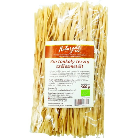 Bio tönköly szélesmetélt tészta Bio tönköly szélesmetélt tészta 500g Finom, minőségi, magyar. Egyértelműen a legnépszerűbb tésztaféle a magyar háziasszonyok között! Értékes száraztészta, saját termesztésű tönkölybúzából. Mással össze nem téveszthető