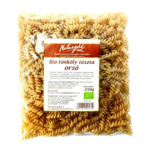 Bio tönköly tészta orsó Bio tönköly tészta orsó 250g Ínyenc tésztakülönlegesség minőségi tönkölylisztből. Sokoldalúan használható spirál forma, mely nagyon sok ételhez jól illik. Főzési idő: 6-8 perc Tojásmentes tészta. Tárolása: napfénytől védett