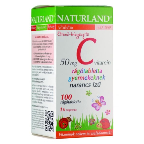1 kép Naturland Naturland C-vitamin 50 mg narancs ízű rágótabletta gyermekeknek (100 db)