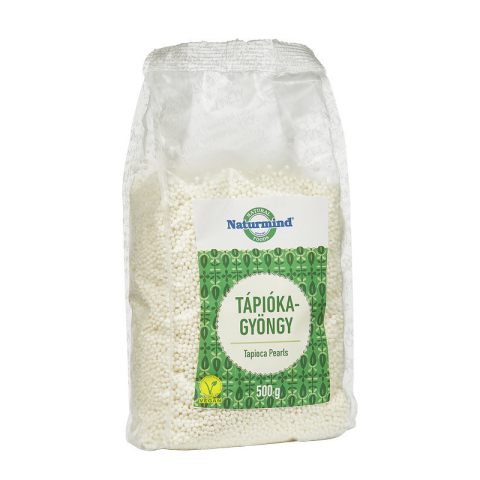 Naturmind tápióka gyöngy 500 g Összetevők: tápiókakeményítő A manióka vagy tápióka Közép- és Dél-Amerikából származó növény, de ma már Ázsiában és Afrikában is nagy területeken termesztik. Elsősorban a növény gumóját használják fel, amely a rizs és a