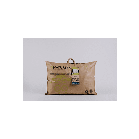 Fedőanyag: natúr színű, 100% pamut, Töltet: 100% újrahasznosított poliészterszál. Méret: 50x70cm, Töltősúly: 500g. Csomagolás: papír hordtáska. 40 fokon mosható termék. A termék minden tekintetben megfelel a fenntarthatóság 3 alappillérének: a környezet, a társadalom és a gazdaság fenntarthatóságának. Előállítását, a Naturtex telephelyén telepített napkollektorok által termelt zöld energia felhasználásával és megváltozott munkaképességű munkaerő be