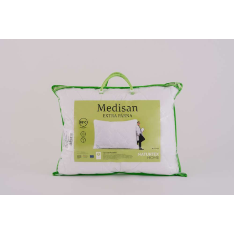NATURTEX® Medisan extra kispárna Kiváló választás azoknak akik magasabb, keményebb keményebb párnán szeretik álomra hajtani a fejüket. A Medisan termékcsalád jellemzői: - 95°C-on mosható, fõzhetõ ezért kiváló otthoni betegápolási vagy fokozott higié