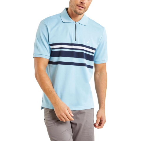 Nautica férfi A Nautica Princeton Polo Shirt férfi galléros póló a márka vitorlás stílusú felsője, melyet az irodai hétköznapokra és a fedélzeten töltött órákra egyaránt elégedetten felvehetsz. A póló puha tapintású, könnyű, lélegző pamutkeverék anyaga gondoskodik maximális kényelmedről egész napos viselet közben is. A Regular Fit szabás és az ikonikus színösszeállítás pillanatok alatt sportosan elegáns megjelenést kölcsönöznek viselőjének. Páros
