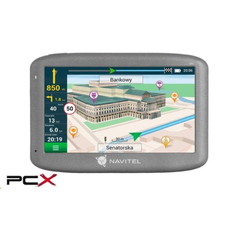GPS navigáció - autós, autóbuszos, kamionos, 5" kijelző, 480 × 272 px felbontás, cseh Köztársaság + Európa térképe, 3D-s épületek és élettartam térképfrissítés, érintőképernyő, FM rádió és zenelejátszó, 8 GB belső memória, támogatott memóriakártyák 32 GB maximum kapacitással, a csomag része továbbá kábel, tartó és tok, fekete tok, méretei 89 × 132 × 14,5 mm (ma × szé × mé), tömege 177 g A NAVITEL E505 Lifetime modern autós navigáció érzéken