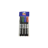 Kúpos hegyű alkoholos marker 4 db intenzív szín, alkohol bázisú tintával, amely nem tartalmaz egészségre káros anyagot. Alkalmas műanyag, üveg, fa, fém, karton, stb. feliratozására, jelölésére. Vonalvastagság: 3-5 mm. Kúpos rost hegy, amellyel az írás vastagsága a tartás szögével jól szabályozható. A tinta használatot követően azonnal szárad.