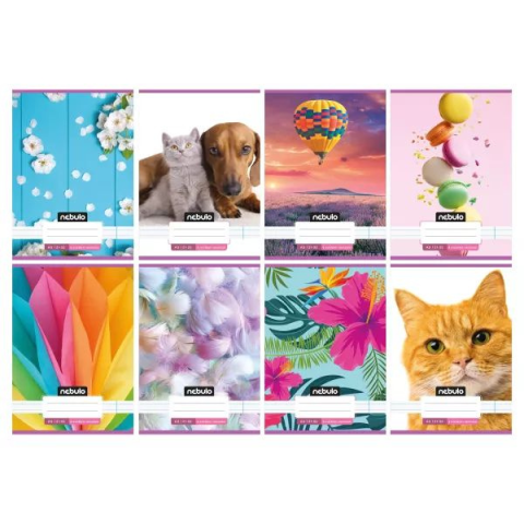 Megj.: FÜZET, A5, 4. OSZTÁLYOS VONALAS, 21-32, CUKI MINTÁK, I., 16 DB/CSOMAG NEBULO