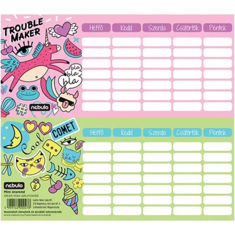 Nebulo: Girl Power egylapos, kétoldalas mini órarend