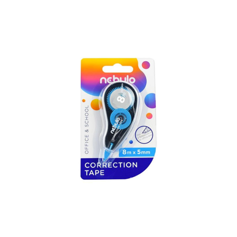 Nebuló hibajavító roller 5mm széles és 8m hosszú szalaggal. Kézhez illő forma. Kiválóan fed és tapad. Azonnal felülírható. A rugalmas hegyet, és erős szalagot védőkupak óvja.