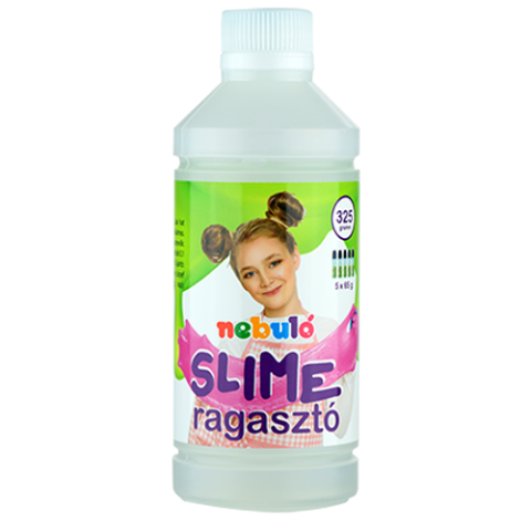 Folyékony, oldószermentes, mérgező anyagot nem tartalmazó, ruhából vízzel kimosható slime készítésére alkalmas ragasztó.
