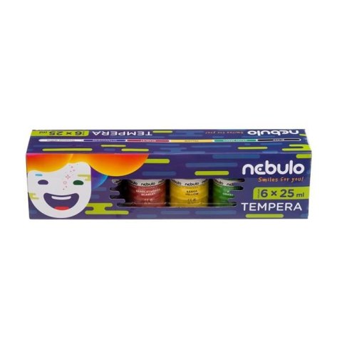 1 kép Nebulo Tempera készlet, tégelyes, 25 ml, NEBULO, 6 különböző szín