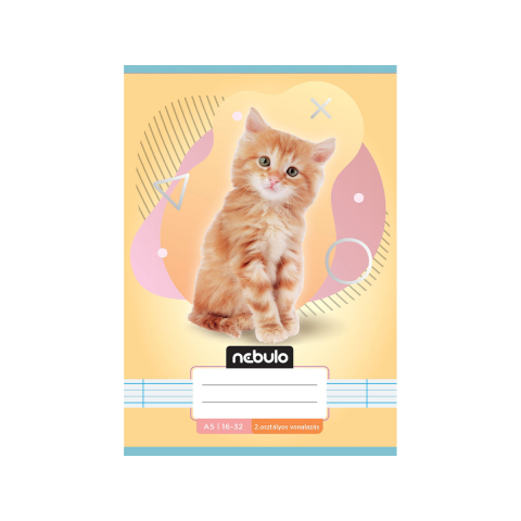 Nebulo: Tűzött 2. osztályos vonalas füzet A5-ös 16-32 Állatos - Cicás