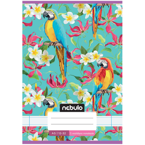 Nebulo: Tűzött 3. osztályos papagáj mintás vonalas füzet 12-32 A/5