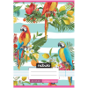 A Nebulo papagáj mintás tűzött füzete egy igazán trópusi hangulatú darab, amely garantáltan feldobja a negyedik osztályos tanulók iskolai napjait. A színes, részletgazdag borítón élénk tollazatú papagájok, citrusfélék és buja zöld növények jelennek meg, fehér–türkiz csíkos háttéren. Ez a látványos, energikus dizájn nemcsak figyelemfelk