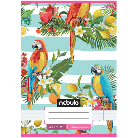 1 kép Nebulo : Tűzött 4. osztályos papagáj mintás vonalas füzet 21-32 A/5