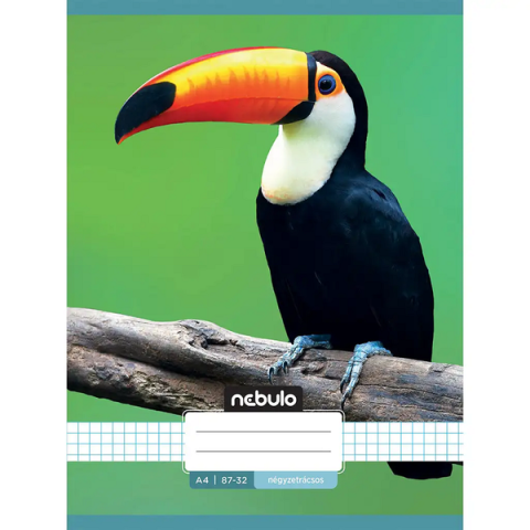 Nebulo: Tűzött kockás tukán mintás füzet 87-32 A/4