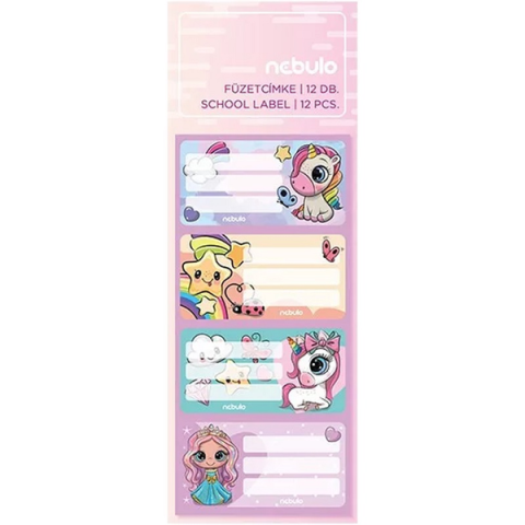 Nebulo: Unikornis és királylány mintás füzetcímke 12db-os szett