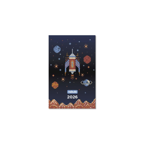Zsebnaptár NEBULO A/6 heti papírborítós Space Game 2026. A6 méretű, heti bontású zsebnaptár, 64 oldal, irkafűzött, 90x140 mm.