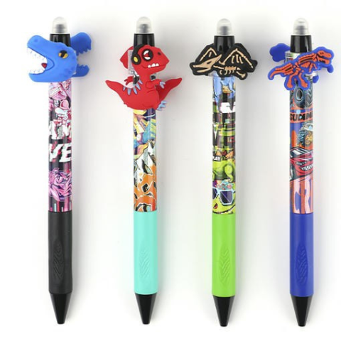 Zseléstoll NEBULO nyomógombos radírozható 0,7 mm Mérges dino Zselés toll nyomógombbal, pörgethető figurával. Speciális tintája a tollvéggel radírozható, de az írás -18 C alatt újra megjelenik. Írásvastagság 0,7 mm. Írásszín kék.