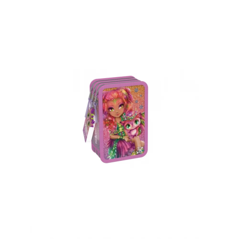 Kiváló minőségű, gyönyörű tolltartó, mindhárom rekesz megtöltve.
