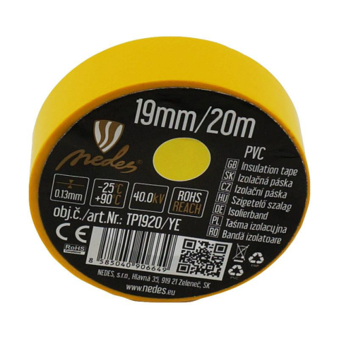 1 kép Nedes Szigetelőszalag 19 mm / 20 m sárga PVC - TP1920/YE