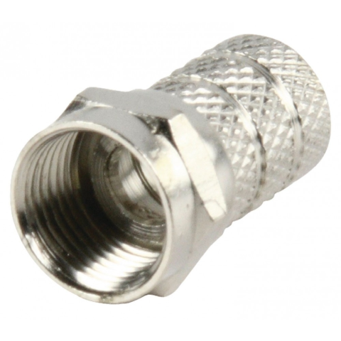 F csatlakozó (twist-on), átmérője 8 mm. A termék műszaki adatai: Szín: Ezüst Csatlakozó típus: F-Connector Csomagolás: Ömlesztett Érintkezők típusa: Dugasz Csatlakozókialakítás - „A” oldal: Egyenes Anyag: Fém Fémbevonás: Nikkel Átmérő: 8.0 mm