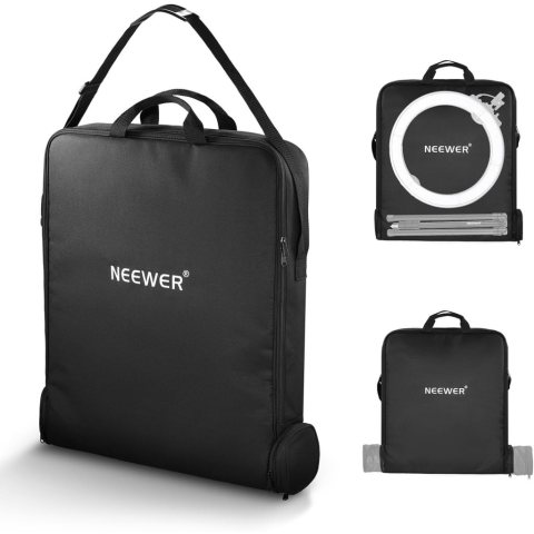 NEEWER RU-009 18 hüvelykes gyűrűs lámpa hordtáska külön tárolótáskával, bővíthető állványhoz A NEEWER RU-009 hordtáska ideális megoldás mindazok számára, akik szeretnék megvédeni és egyszerűen szállítani gyűrűs lámpájukat és állványukat. A párnázott belső